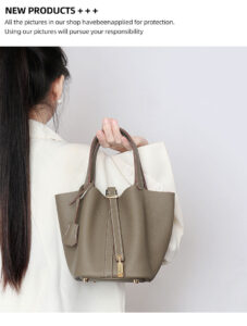 Leather Bucket Handbag – Handle Purse for Daily Use