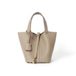 premium pebbled leather in a warm tan hue, this handbag blends elegance with functionality. Its structured bucket shape, complete with top handles, offers easy carrying. A decorative front strap with a gold – tone buckle and zipper detail adds a stylish touch. Ideal for daily essentials, it combines timeless design with modern practicality, perfect for elevating any outfit, from casual to chic